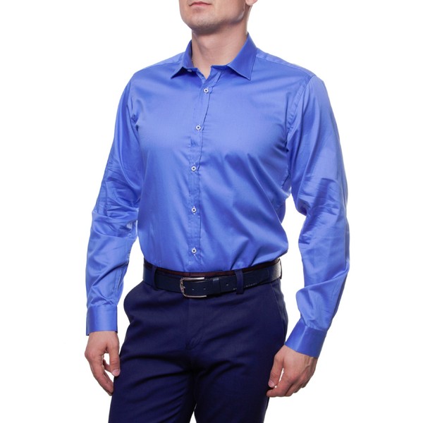 Рубашка с длинным рукавом, синий, M