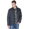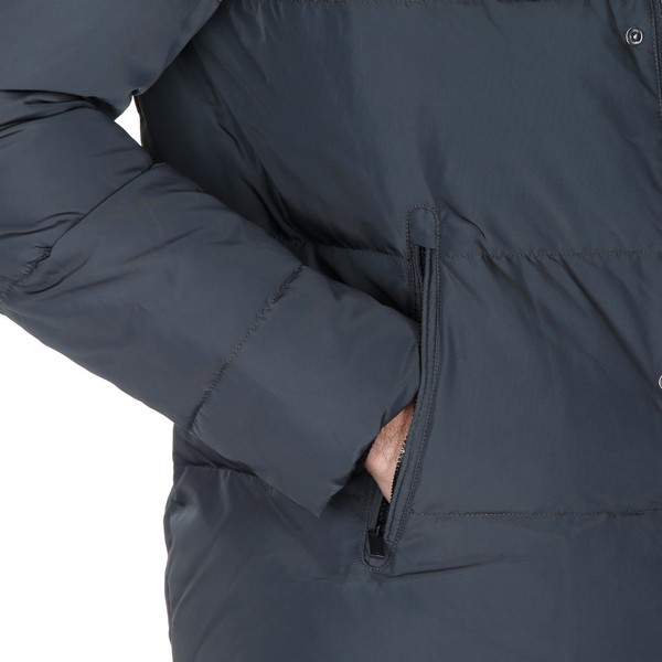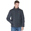 Стеганый пуховик с высоким воротником. Модель выполнена с застежкой на молнию, скрытую планкой на кнопках. Два внешних наклонных кармана на молнии и один внутренний. Хлястики по бокам. Внутренняя манжета по рукаву. Наполнение: 50% пух, 50% перо.